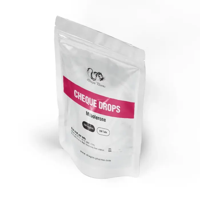 Cheque Drops, containing Mibolerone, is an oral anabolic-androgenic steroid (AAS) at 250 mcg/tab in a 100-tab pack from Dragon Pharma. Originally developed for veterinary use to suppress estrus in dogs, it's used off-label in bodybuilding for its extreme androgenic effects, boosting aggression and strength. As a 17-alpha-alkylated oral, it has high hepatotoxicity and strong progestogenic activity, requiring strict management.