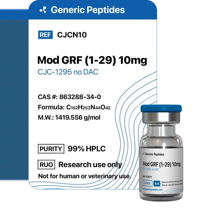 Mod GRF (1-29) 10 mg stimulates the pituitary gland to release growth hormone in short bursts, promoting muscle growth, enhancing recovery, and supporting fat metabolism. It mimics the natural growth hormone pulse, with users noticing increased energy and muscle benefits within 1-2 weeks, depending on dosage and training.