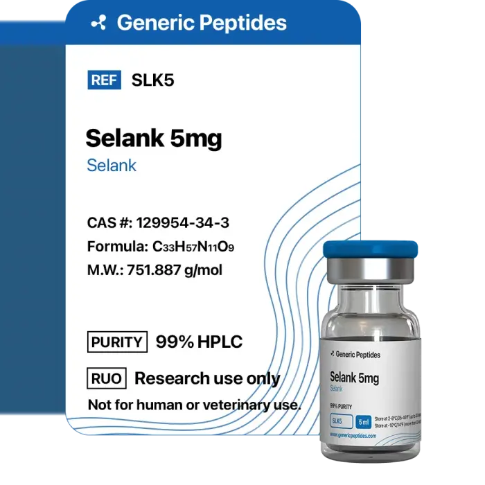 Selank 5 mg is used to alleviate anxiety, improve mood, and enhance cognitive performance in research and off-label contexts. It is a synthetic anxiolytic peptide that modulates the brain's stress response, often explored for its potential in managing generalized anxiety and stress-related conditions, requiring reconstitution before use.