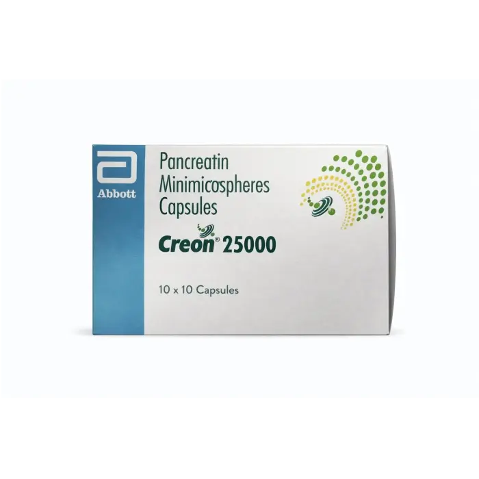 Creon is available in multiple strengths (such as 10,000, 25,000, and 40,000 units of lipase activity) and comes in capsule form. The capsules contain enzyme pellets that are designed to work in the digestive tract when taken with meals.