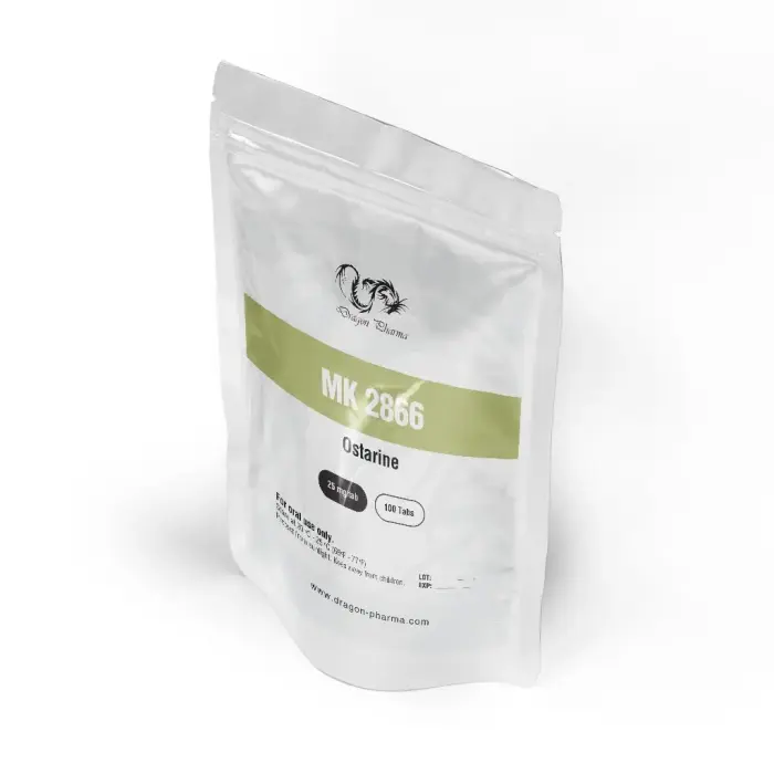 MK 2866, or Ostarine (Enobosarm), is a selective androgen receptor modulator (SARM) classified as an oral compound in this 25 mg/tab, 100-tab pack from Dragon Pharma. Developed for muscle-wasting conditions, it's widely used in bodybuilding for lean muscle growth and preservation. As an oral compound, it has minimal hepatotoxicity, no aromatization, and mild HPTA suppression, requiring careful monitoring.