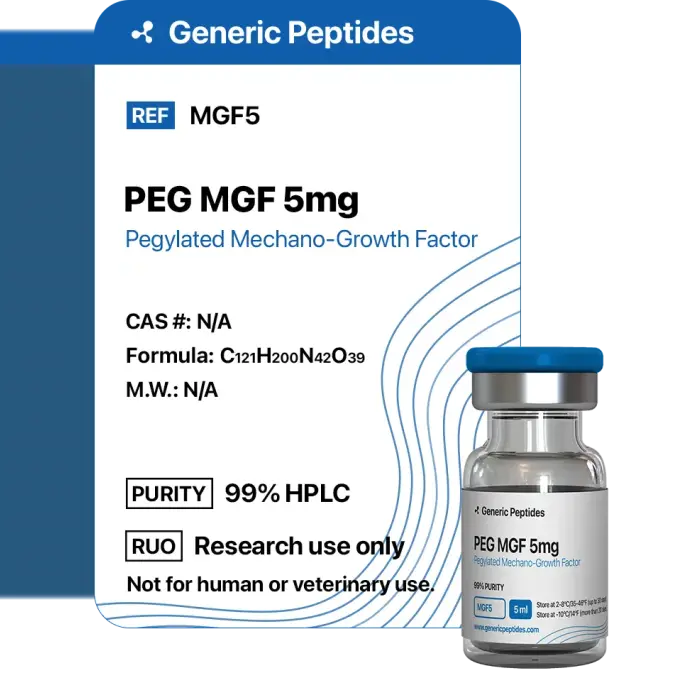 PEG MGF 5 mg vs MGF: PEG MGF has a longer half-life; MGF is shorter-acting.